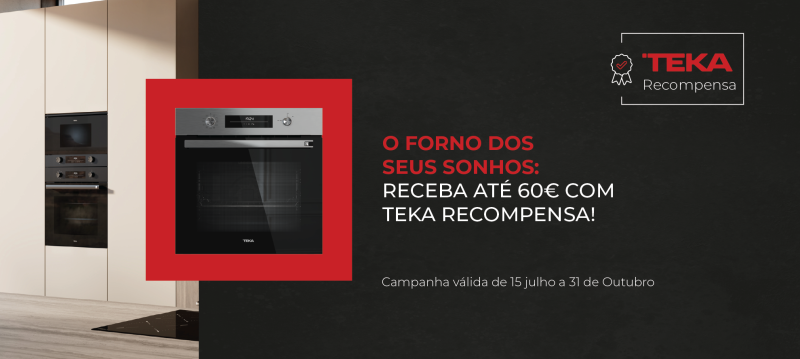 Na aquisição de um forno pirolítico da marca Teka, consoante o valor de compra do mesmo, os clientes que registem uma participação válida na plataforma, receberão um reembolso de até 60€.